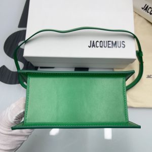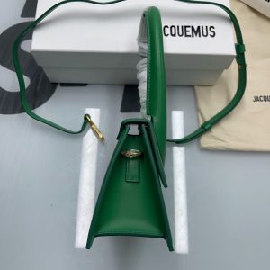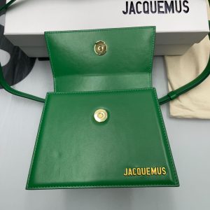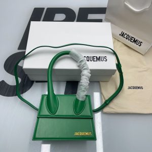 Jacquemus Borsa Le Chiquito Moyen in pelle verde con manico singolo in pelle. La chiusura è con bottone a pressione. La tracolla è rimovibile e regolabile in pelle. Sul davanti è presente il logo caratteristico in rilievo nel colore oro. Fodera in cotone. All’interno è presente una tasca applicata con patch con logo tono su tono. Dimensioni: 18 x 15,5 cm x 8 cm