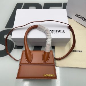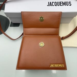 Moyen in pelle marrone con manico singolo in pelle. La chiusura è con bottone a pressione. La tracolla è rimovibile e regolabile in pelle. Sul davanti è presente il logo caratteristico in rilievo nel colore oro. Fodera in cotone. All’interno è presente una tasca applicata con patch con logo tono su tono. Dimensioni: 18 x 15,5 cm x 8 cm